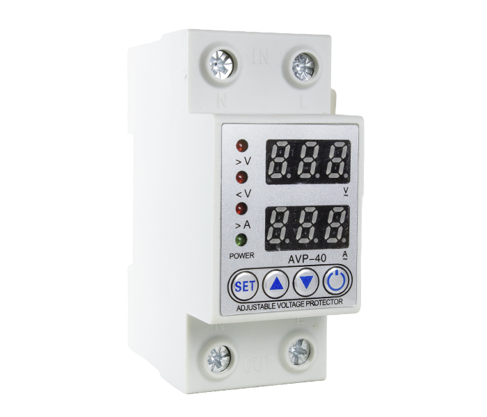 Relé de proteção monofásico contra subtensão, sobretensão e sobrecorrente. Modelos para tensão de 140 a 300VCA e correntes de 40A. Possui display digital que permite a monitoração da tensão e corrente atual e também a parametrização dos limites de operação. Montagem em trilho DIN. O contato de saida interrompe o acionamento da carga enquanto durar a condição de proteção.